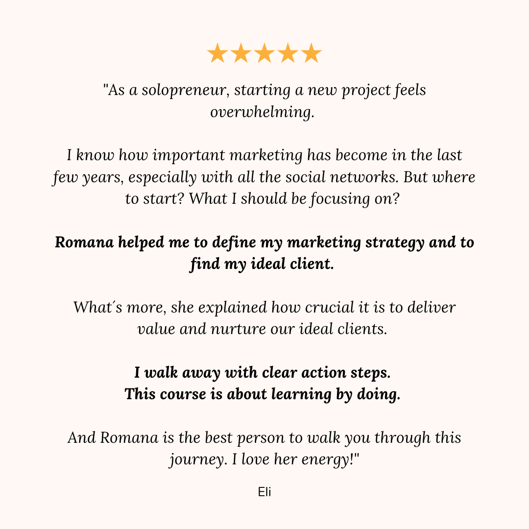 It will help B2C female founders who feel lost and confused to gain clarity, feel inspired, excited, and motivated - and get a CLEAR step-by-step strategy roadmap ready to execute.